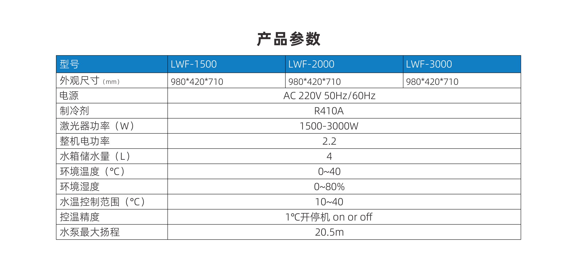 | 型號 | LWF-1500 | LWF-2000 | LWF-3000 |